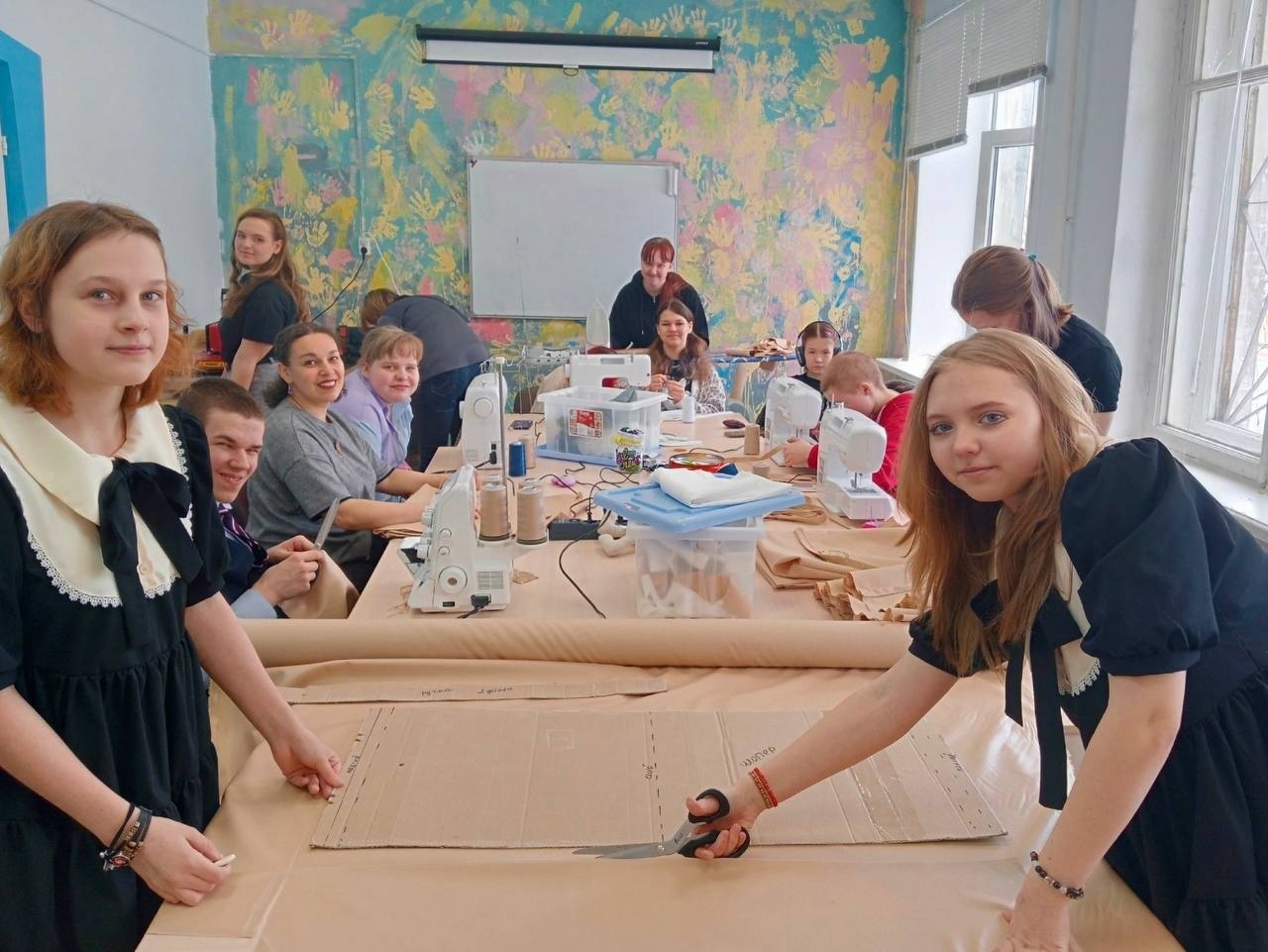 - Швейное дело: ребята учатся шить на швейной машинке, кроить и создавать экосумки, фартуки, аксессуары и другие изделия.
